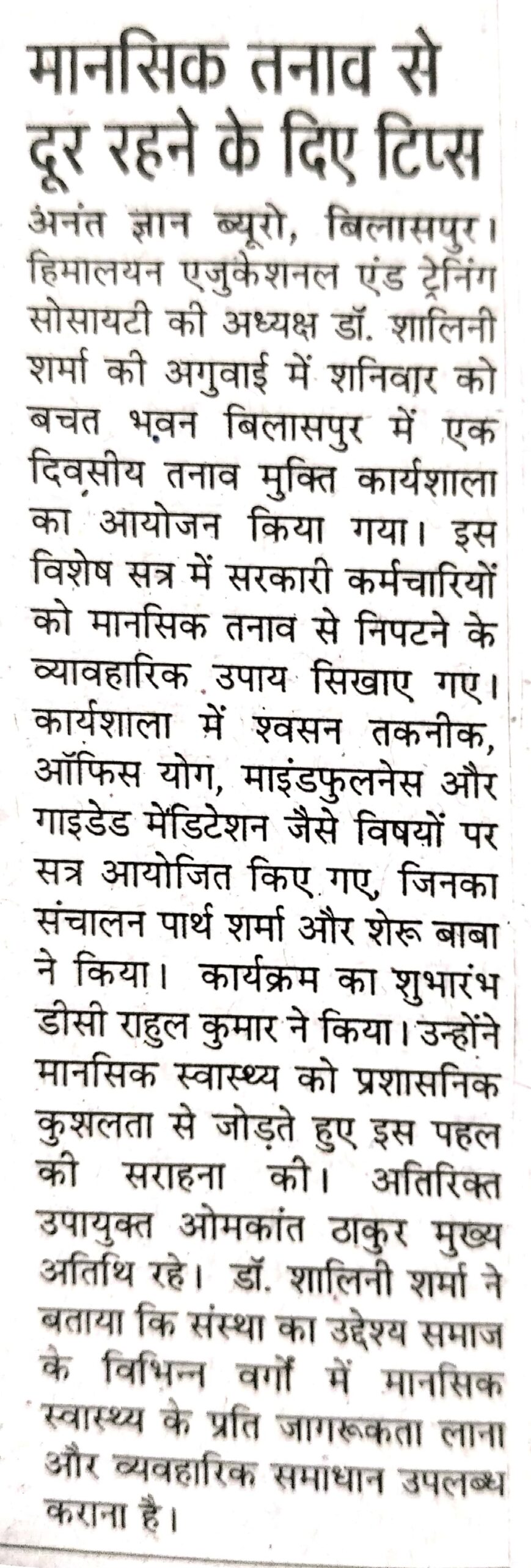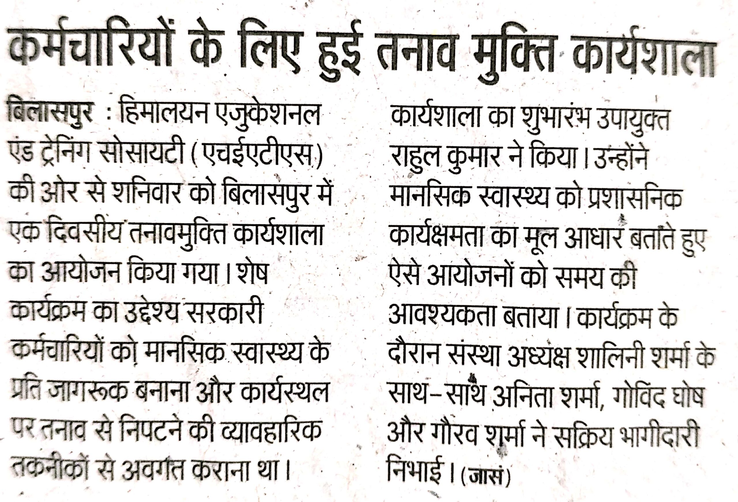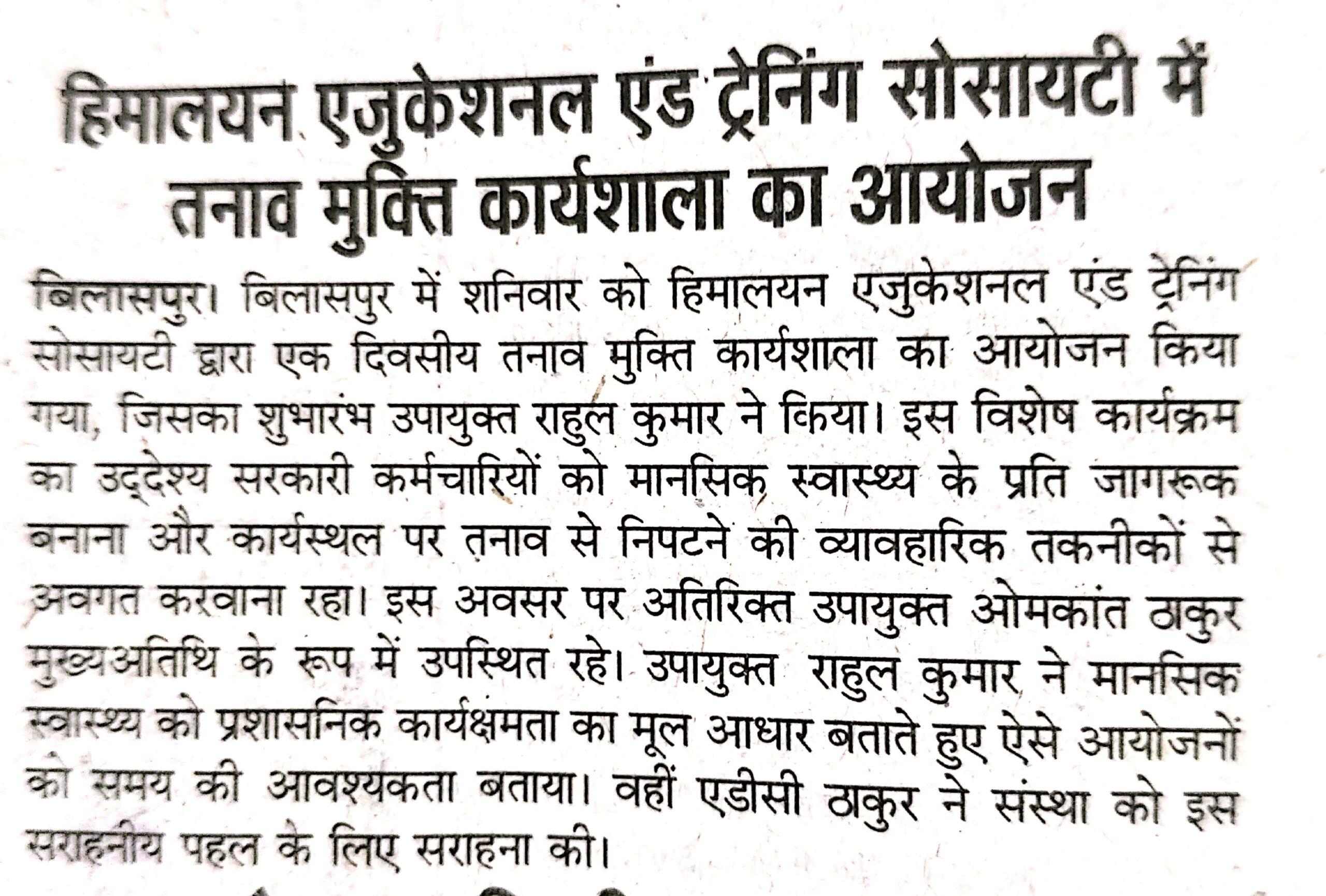 Press & Media Home » Press & Media Press & Media All Achievements Awards Mental Health & Stress Management Workshop ऑनलाइन हिन्दी कार्यशाला